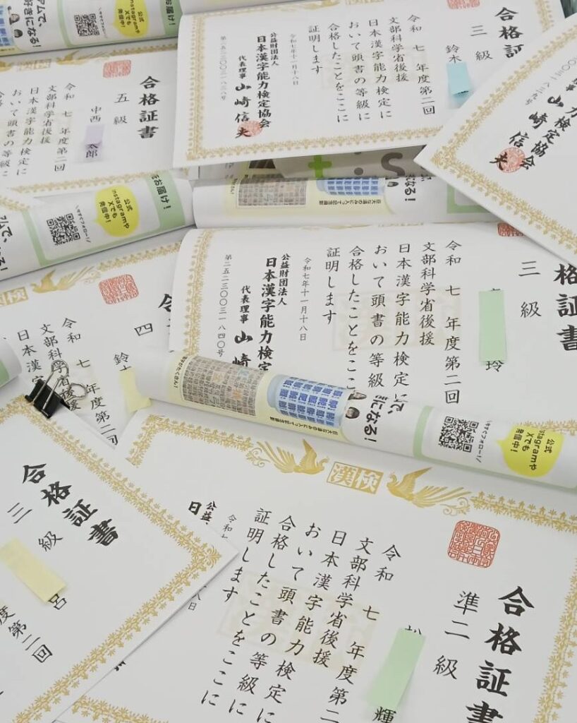先月の漢検の結果が校舎に届きました。
