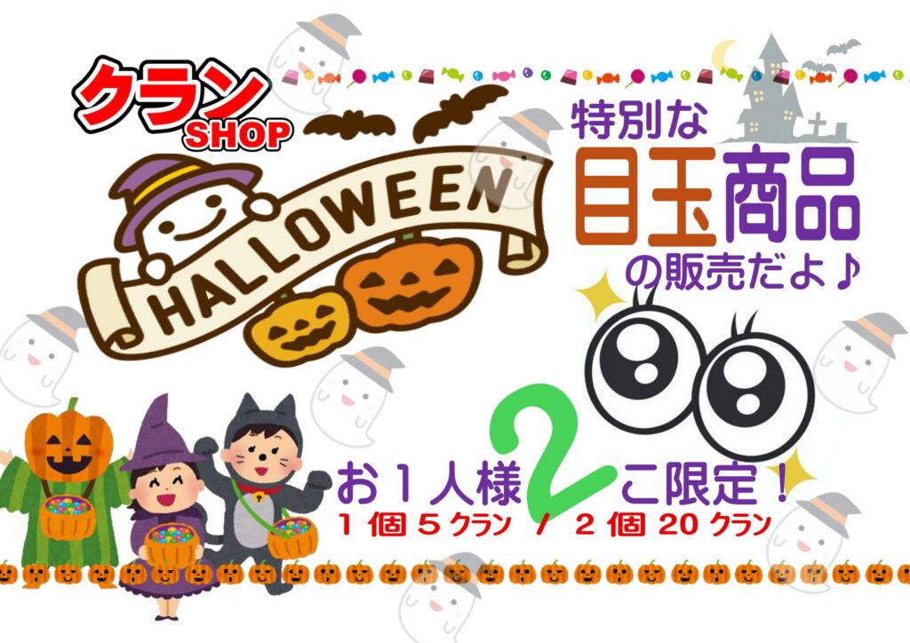 先日、10月の末ということでハロウィンの特別クランSHOPを開催いたしました。