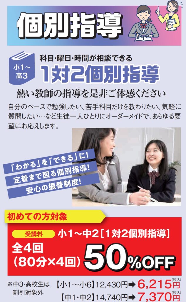#個別指導コース(小1~中2)★50%OFF!