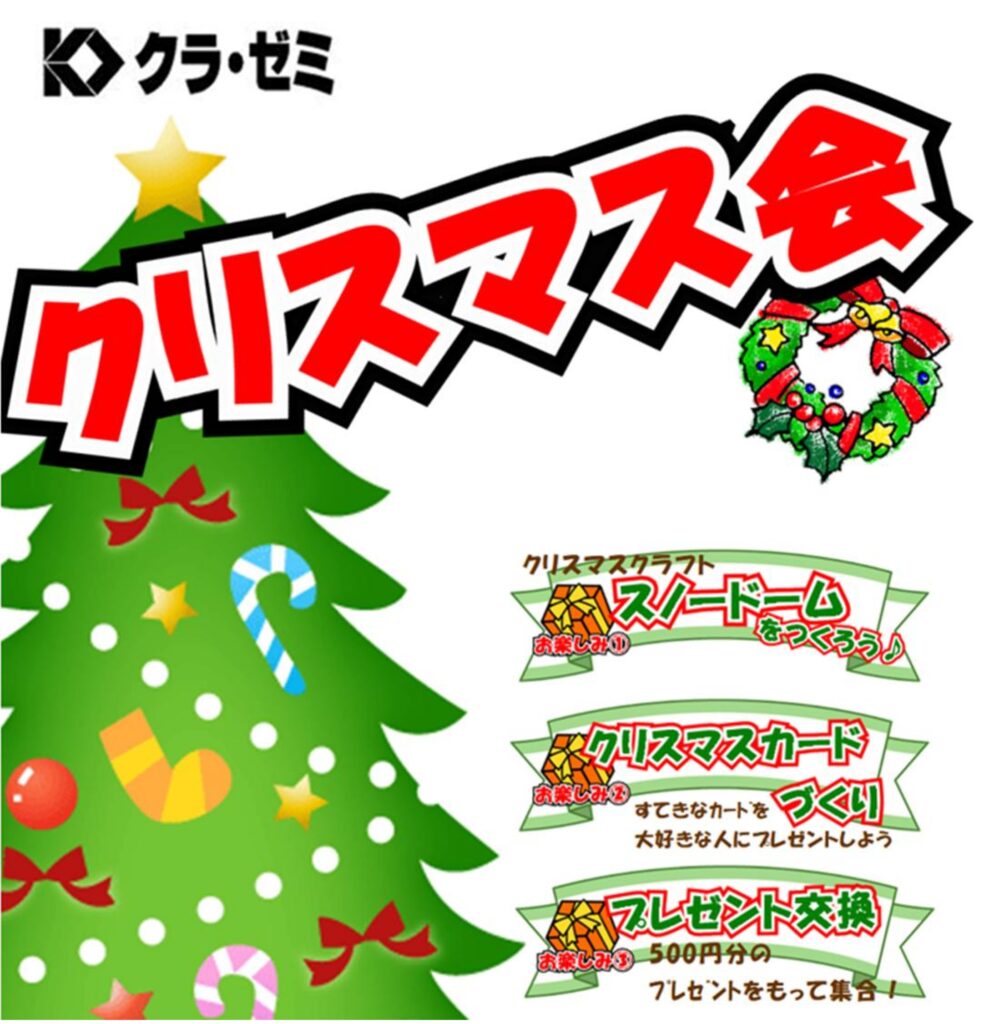 授業だけじゃない…㉜12/13(土)冬期講習の特別企画(小学生)『クリスマス会』のお知らせ