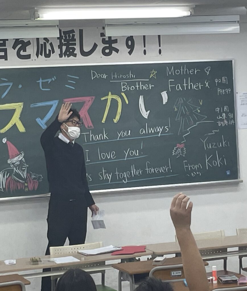 写真は昨年のクリスマス会の様子です。こちらはクリスマス恒例の「山本先生のクリスマス・クイズ大会」の様子となります。こちらも是非楽しみにしてくださいね!