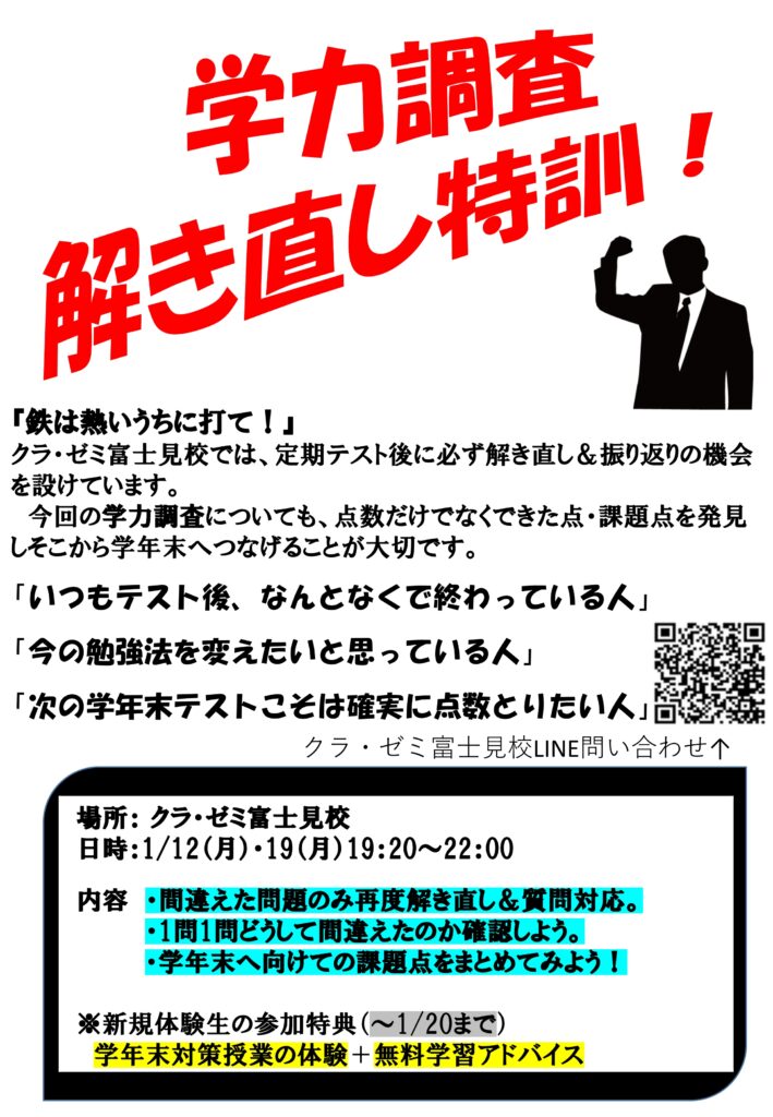 1/12(月)・19(月)学力調査解き直し特訓のご案内