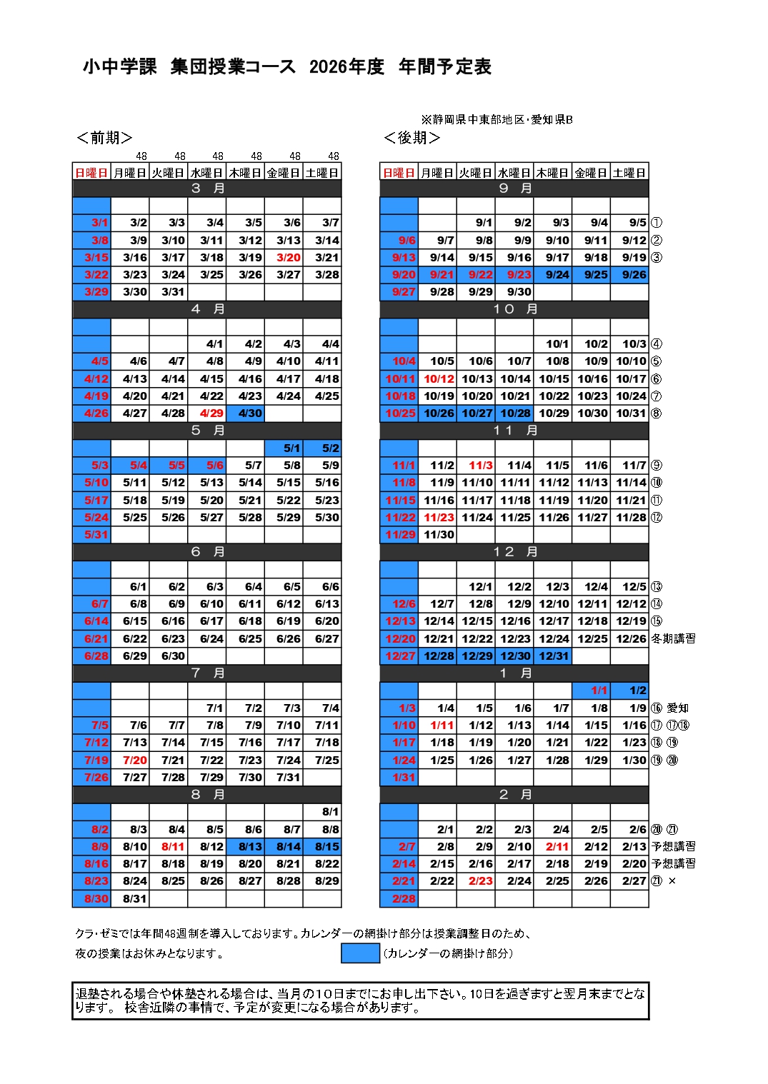 詳細は「教室からのお知らせ」をご確認ください