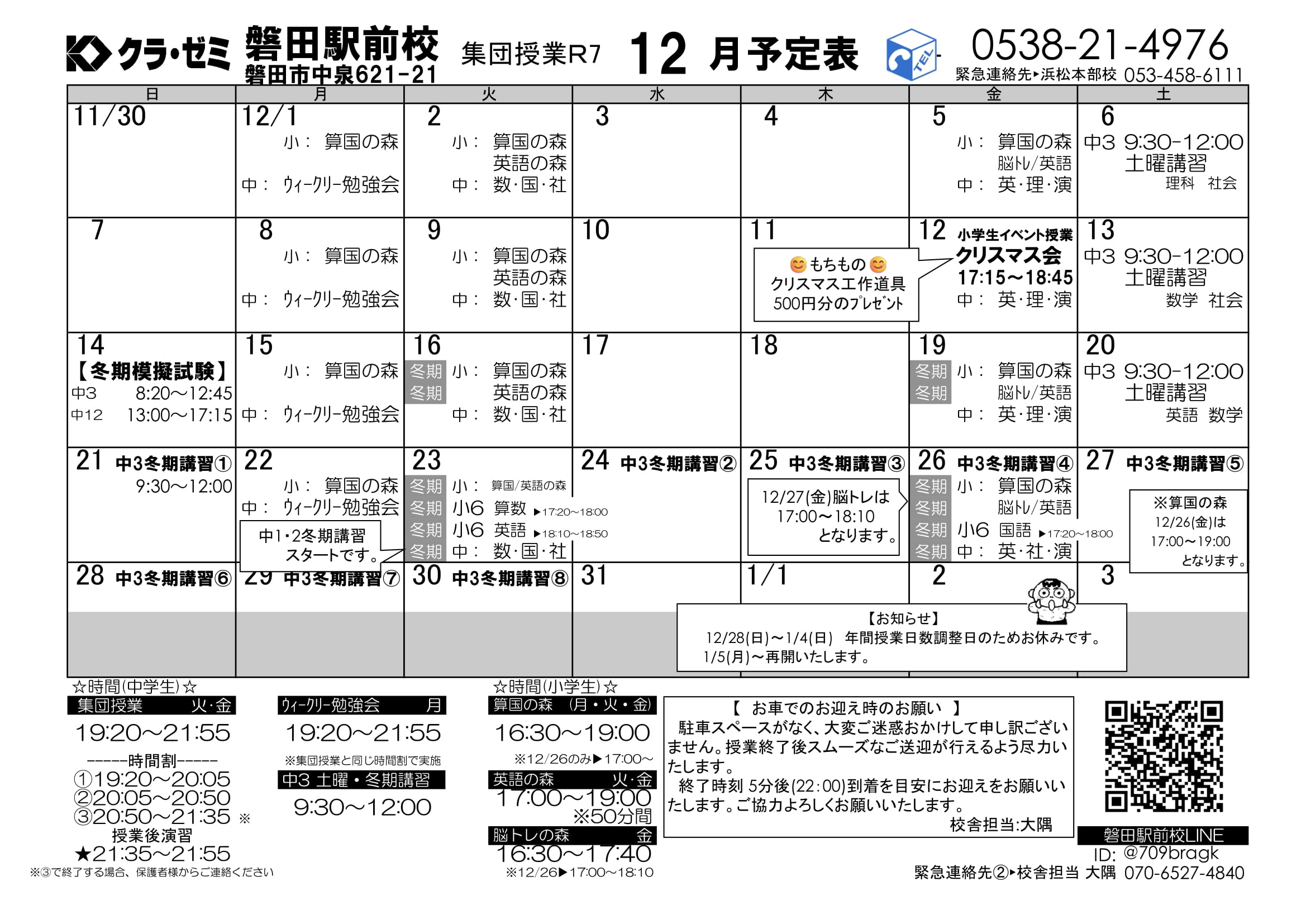 ★クラ・ゼミの冬期講習のご案内